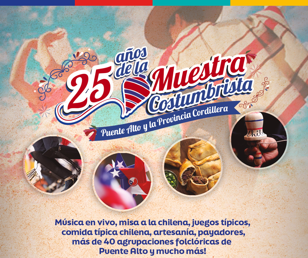 El sábado 8 y domingo 9 de noviembre de 2025 se celebrará la "Muestra Costumbrista de Puente Alto y la Provincia Cordillera", que cumple 25 años. El evento comienza a las 11:30 hrs. y habrá música en vivo, misa a la chilena, juegos, comida típica y mucho más...